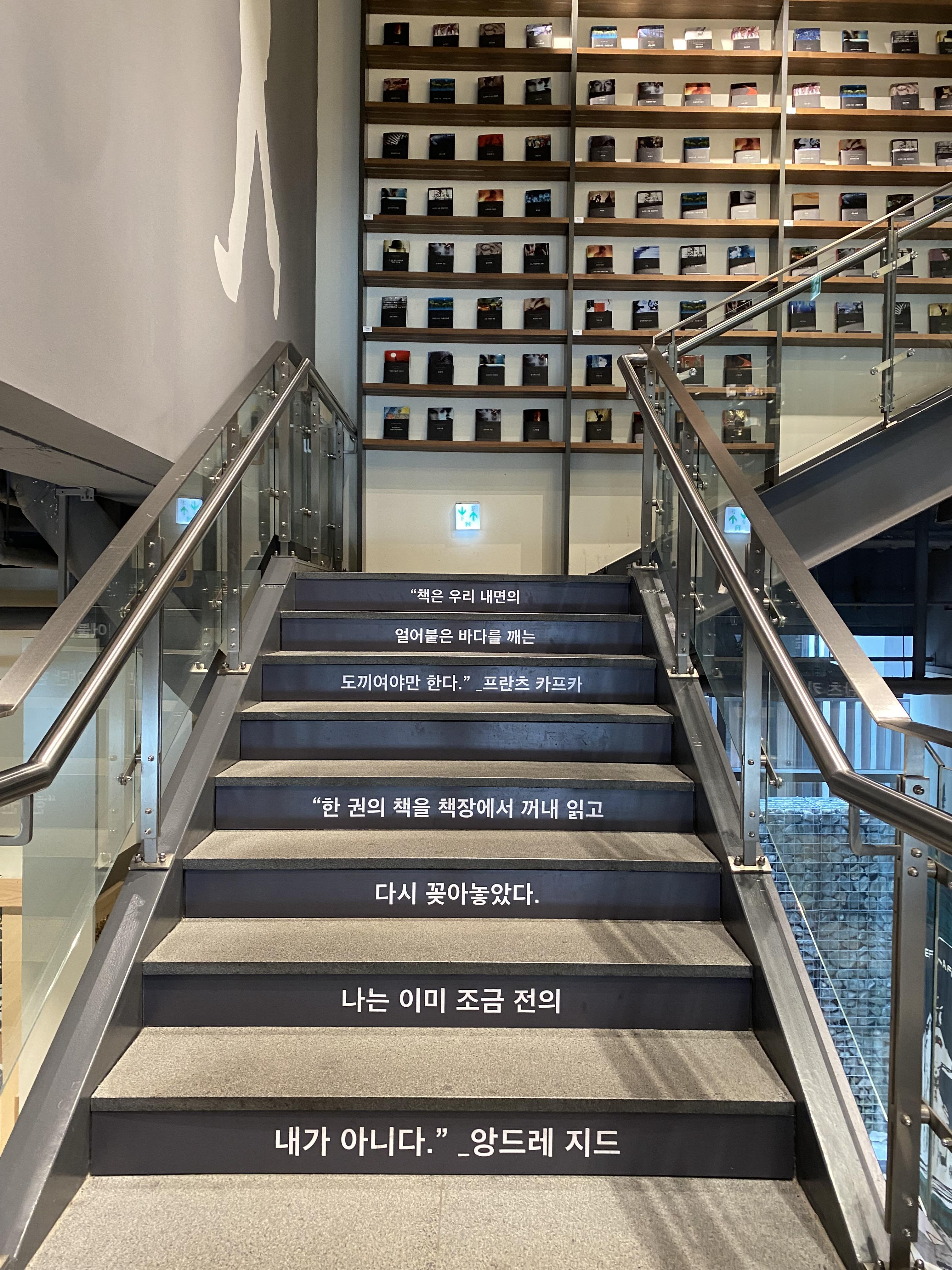 계단에 적혀 있는 명언들이 독서와 공부에 대한 의욕을 불타오르게 합니다.